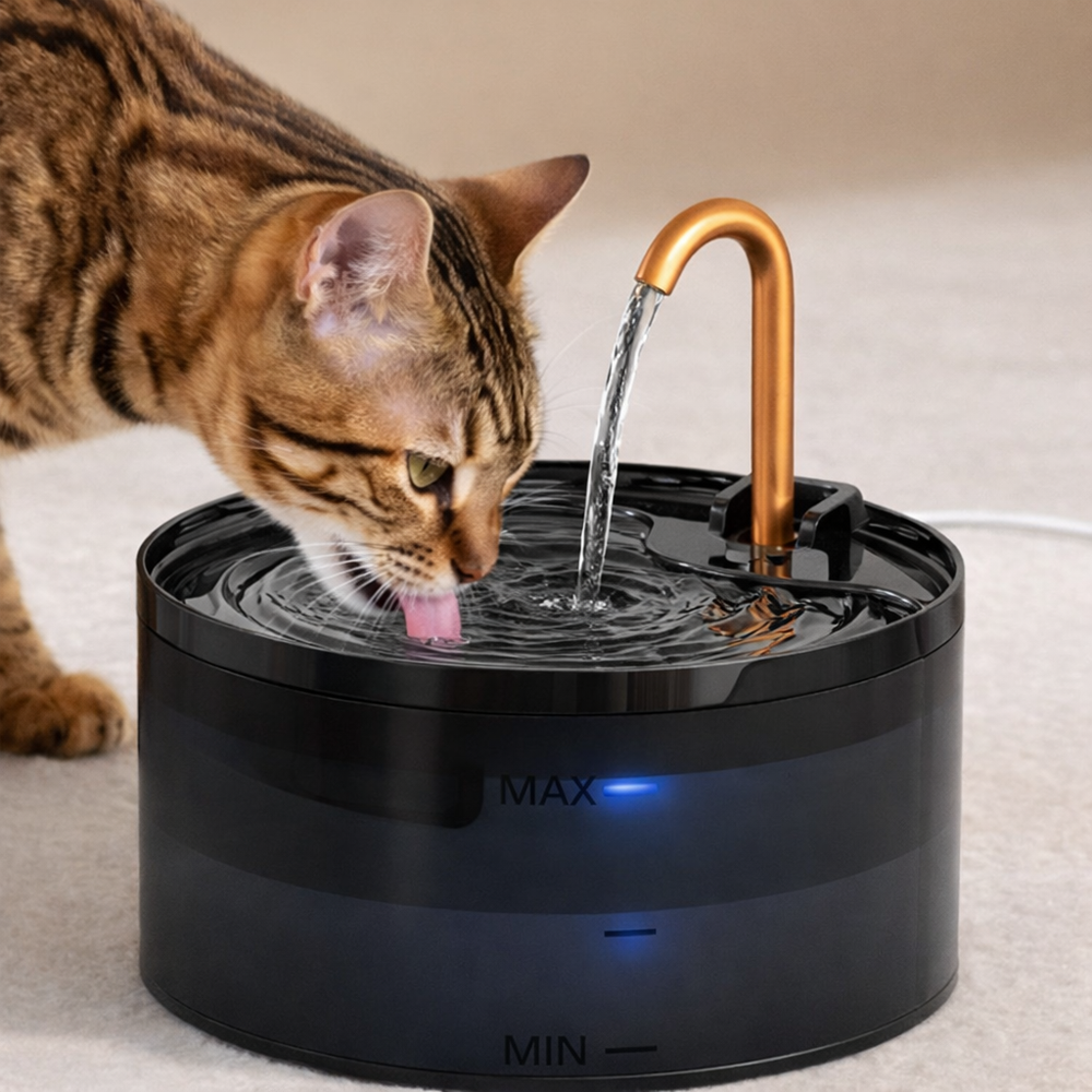 “Many pet products overlook the importance of combining function with ease of use. PureFlow™ feels intentionally designed to encourage drinking while also fitting more naturally into the home. The copper spout and quiet circulation help it feel more refined than standard options.”